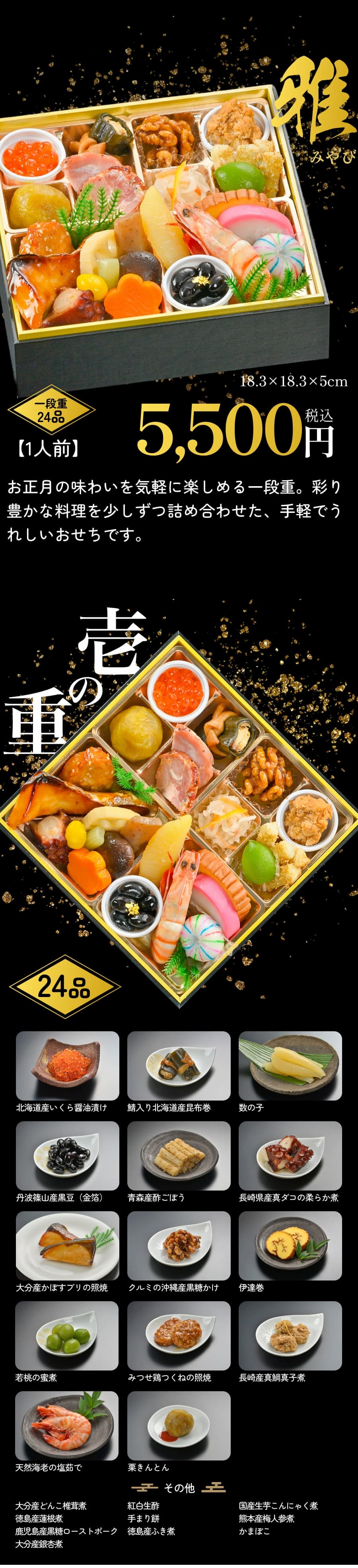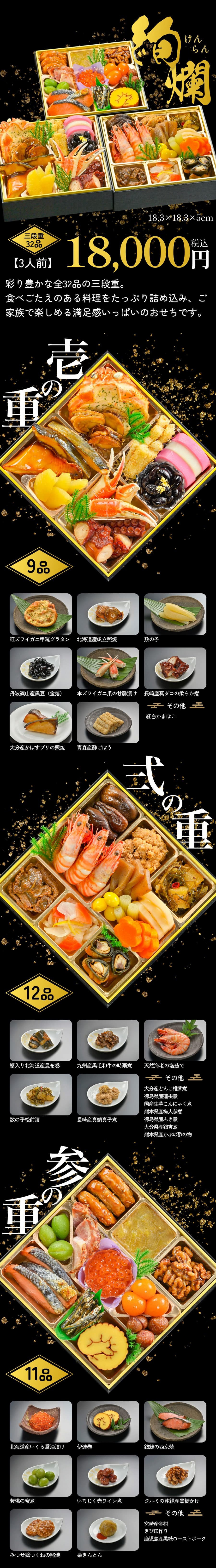 絢爛、鶴亀、雅:18.3×️18.3×️5cm(一段の大きさ)
